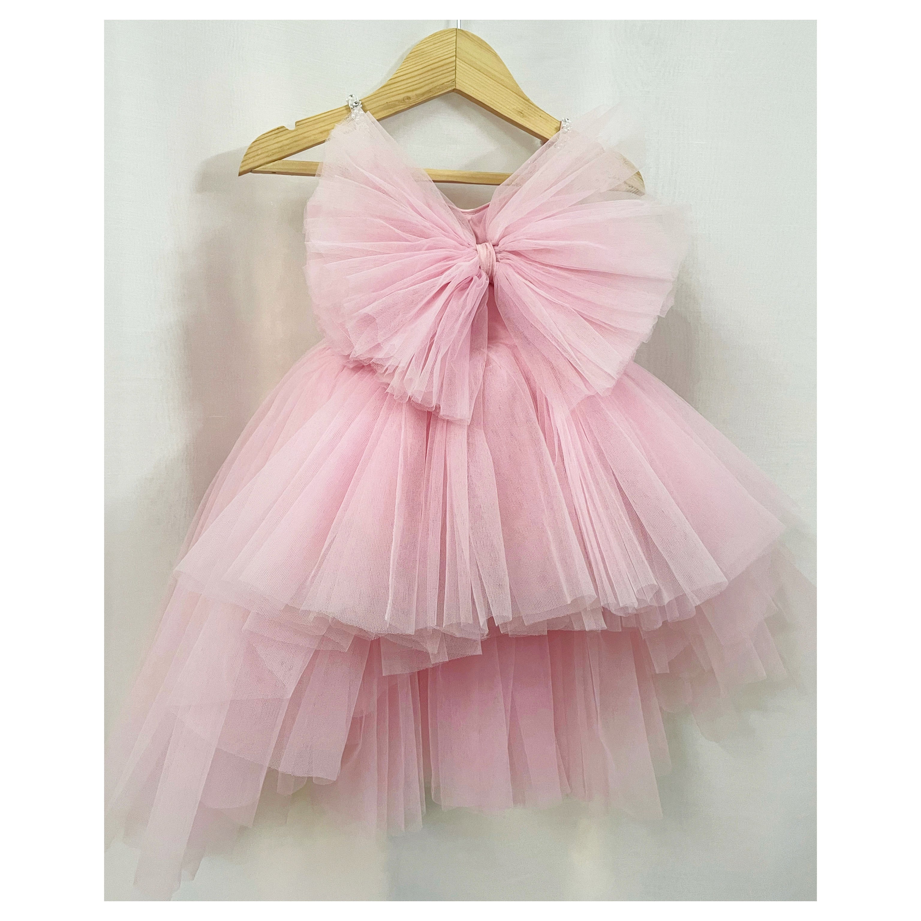Tulle hi low style dress. Zip at back.