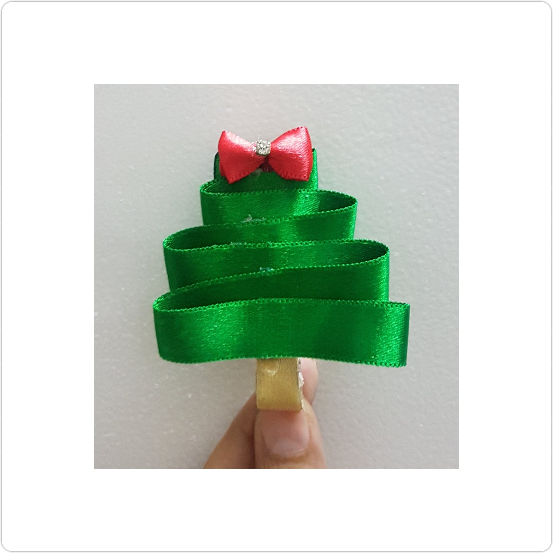 Handmade satin Xmas tree hairclip
