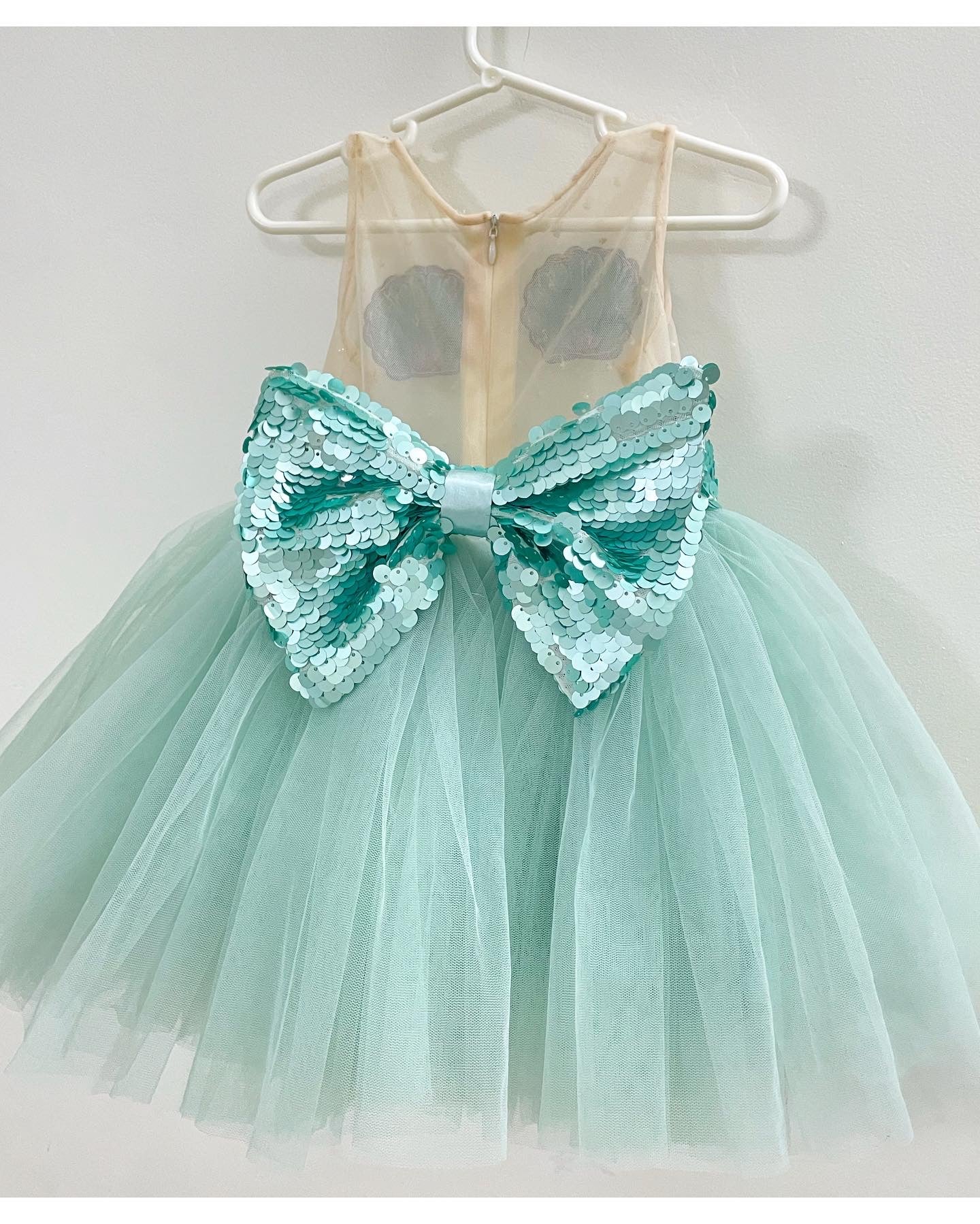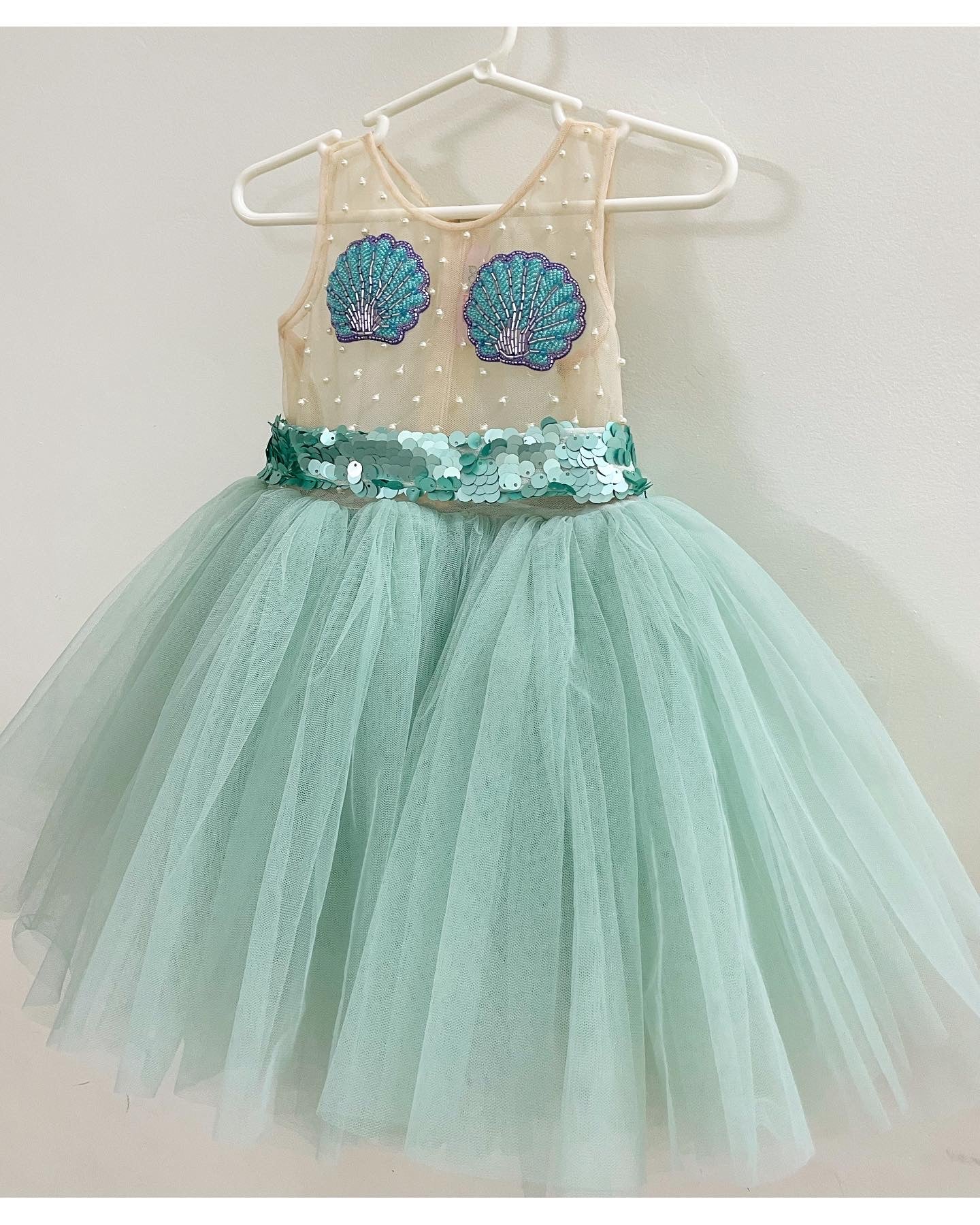 A beautiful hand embroidered mermaid gown for under the sea or mermaid theme parties.