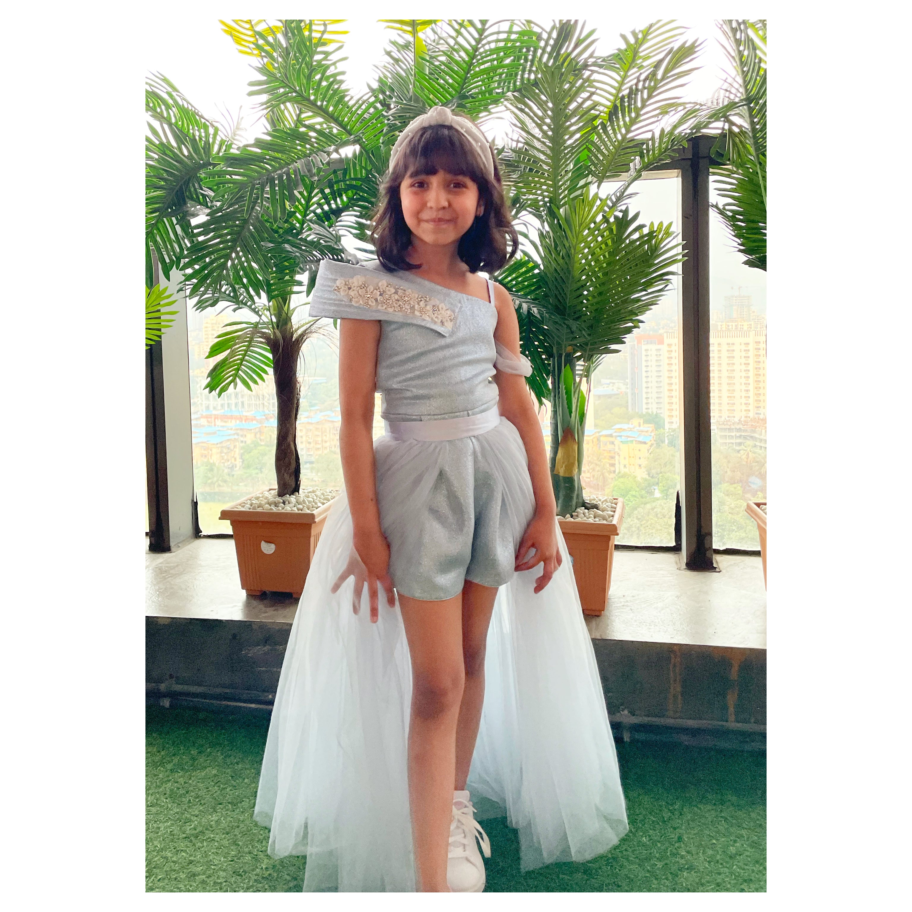 Jacquard playsuit with a detachable skirt.