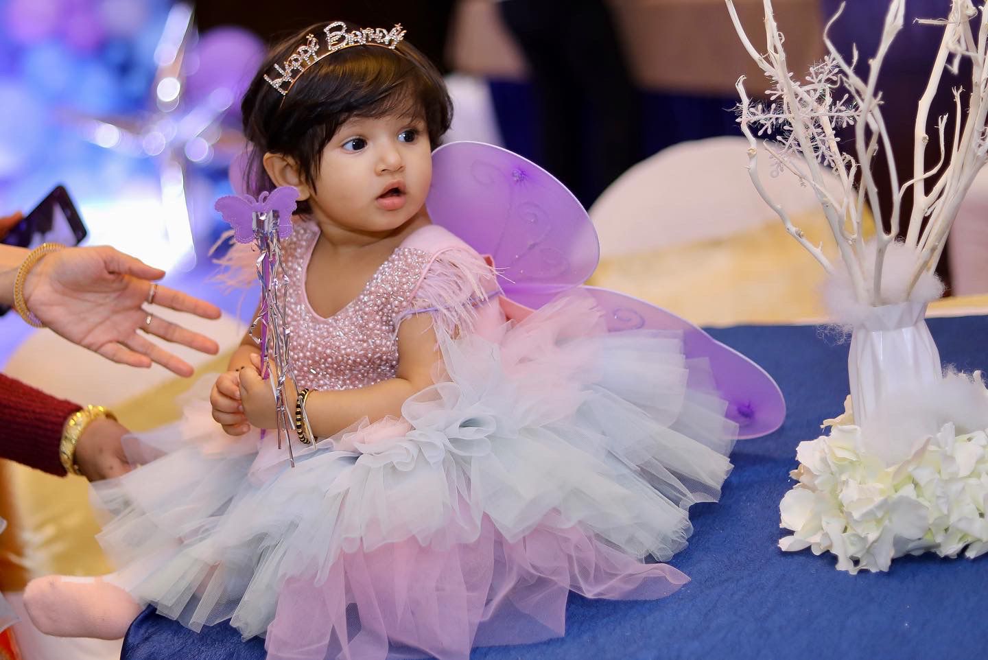 Luxurious crystals embedded bodice with rainbow color flare fluff